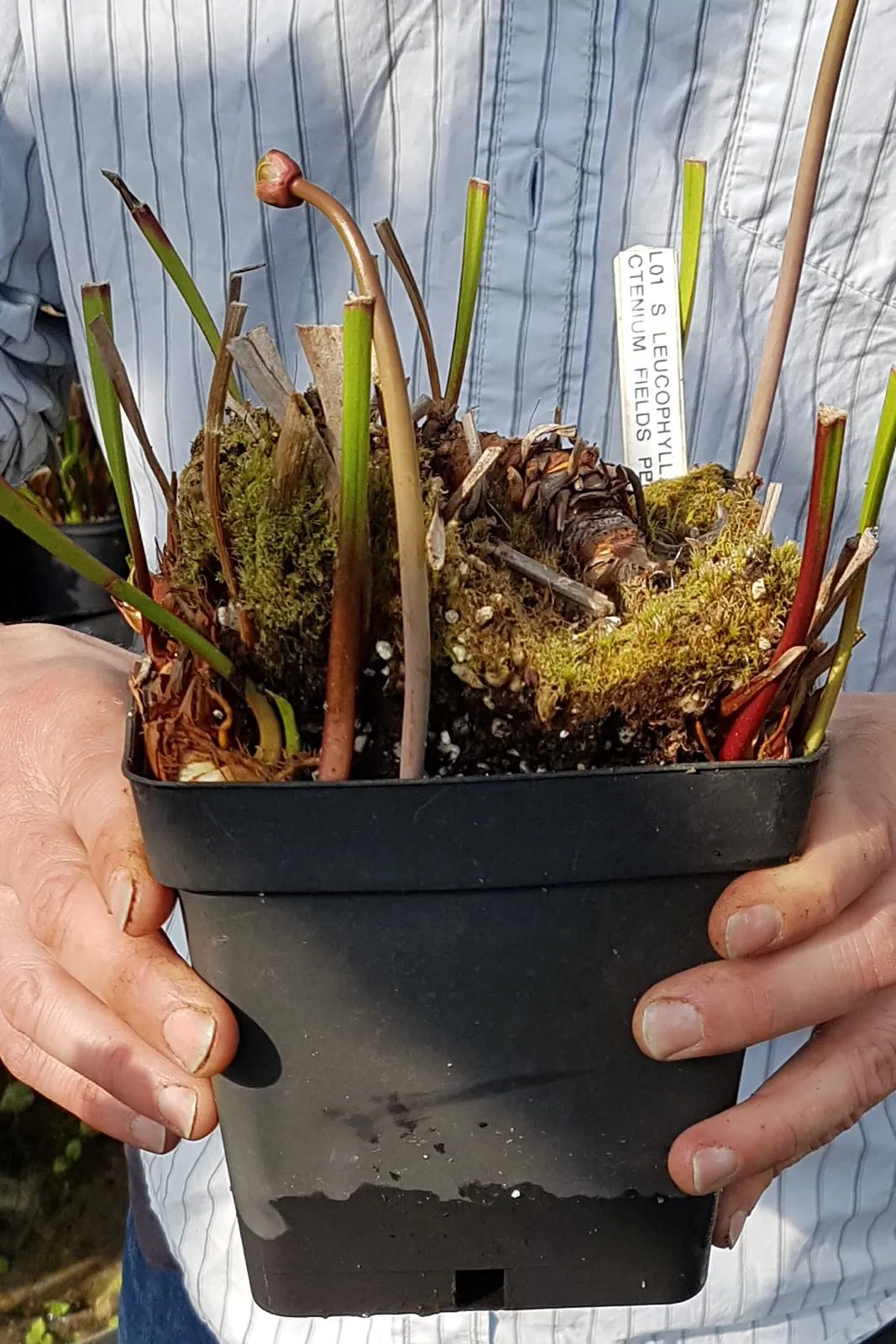 This is not a gentle process! Sarracenia has a fairly basic root system. It’s only there to support the plant in the soil and draw in moisture. Sarracenia get their nutrition in other ways! Don’t worry if a piece of rhizome doesn’t look as if it has many roots. The plant will survive and will grow new ones readily. You can even pot a rhizome piece without any roots!