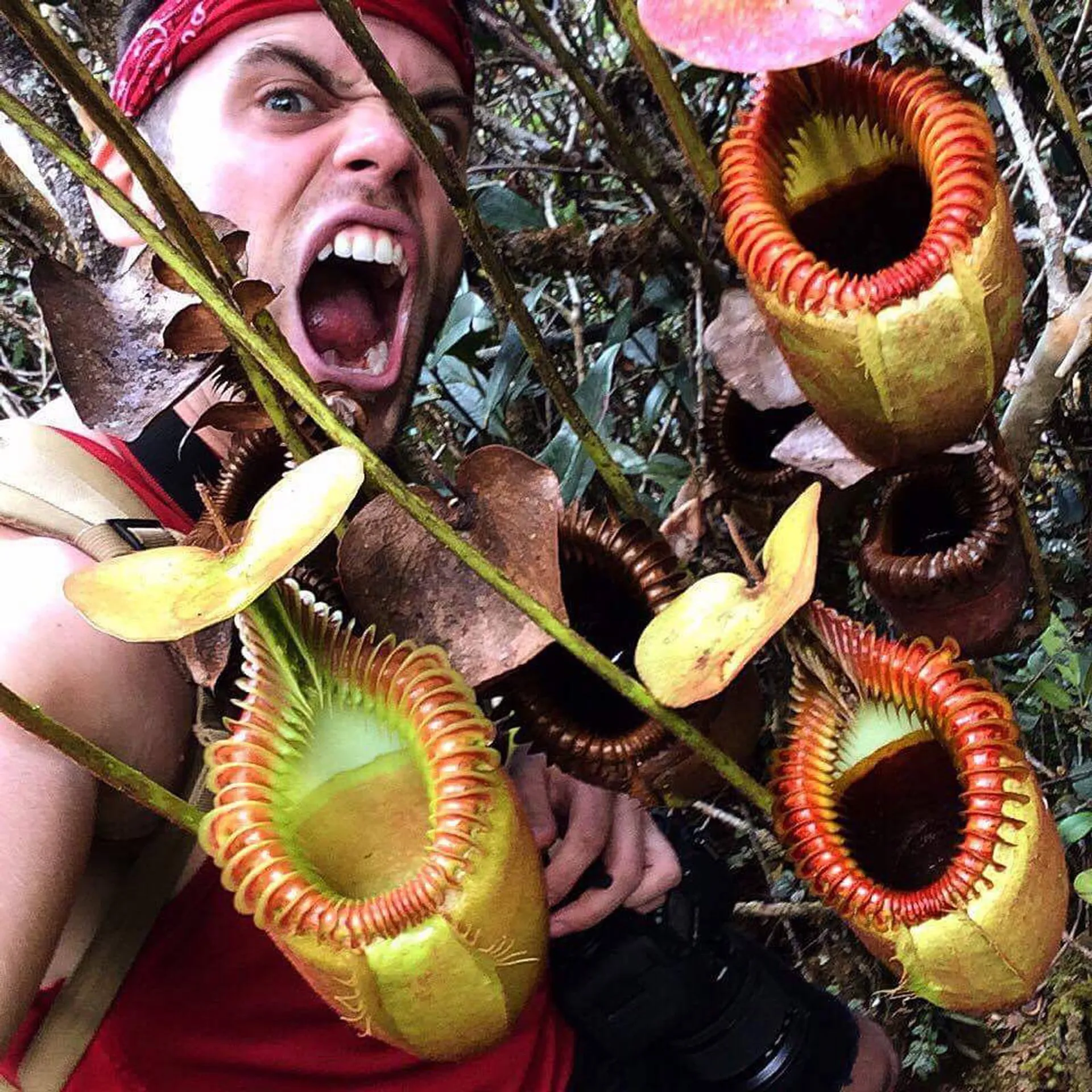 Domonick in Borneo with Nepenthes villosa