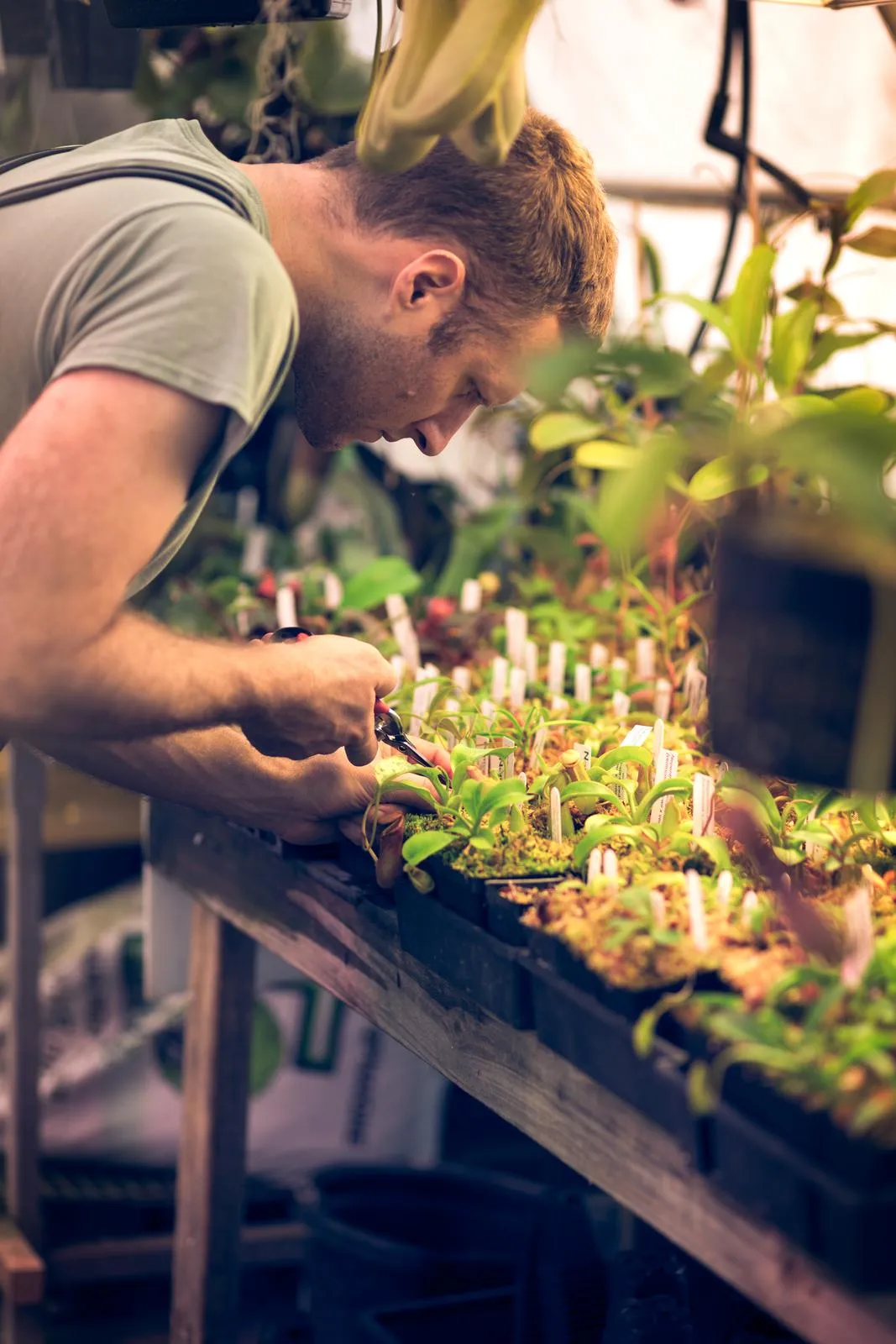 Ryan propagating young Nepenthes plants in the nursery Are those the species you would recommend to new growers?