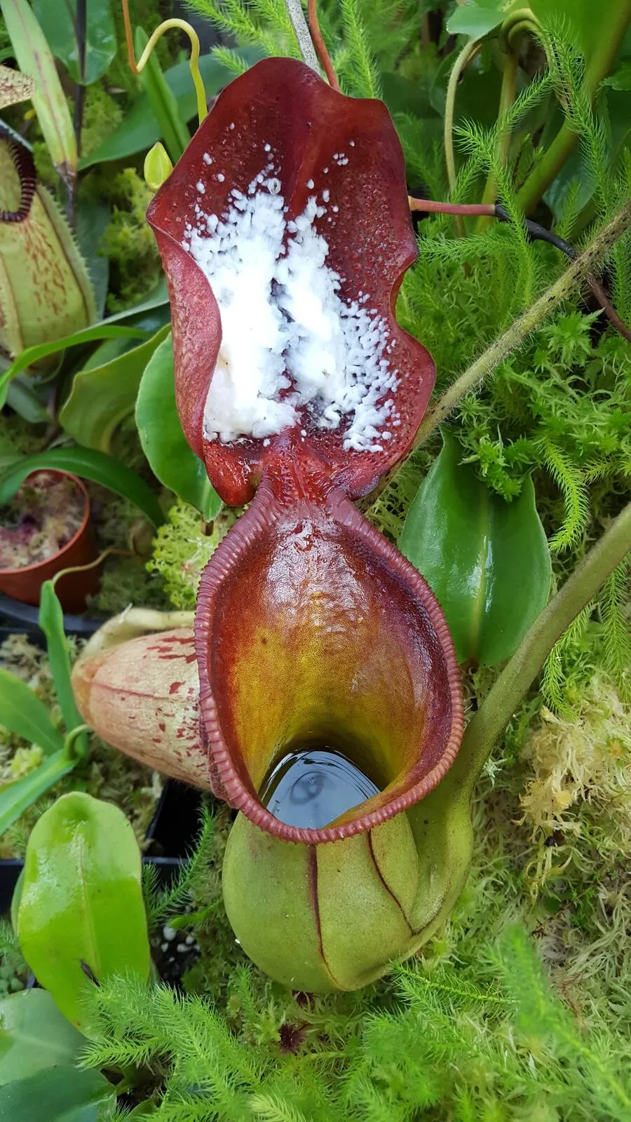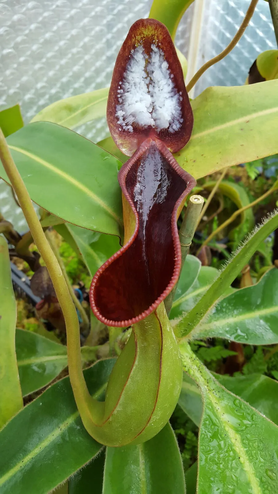 Actually, N. ‘Smilodon’ isn’t an officially registered cultivar. I indulged myself and figured that after 30 years of growing I would name something. Besides, there any many established cultivars across all CP genera that we recognise but are not officially registered. I would love the name to be commonly accepted. Smilodon, or saber-toothed tiger as it was more commonly known, was a muscular mass of fur and teeth. I thought N. ‘Smilodon’ was quite an appropriate name for my cross N. ‘red hairy hamata’ x hamata ‘Lumut’. It really is a beautiful hybrid.