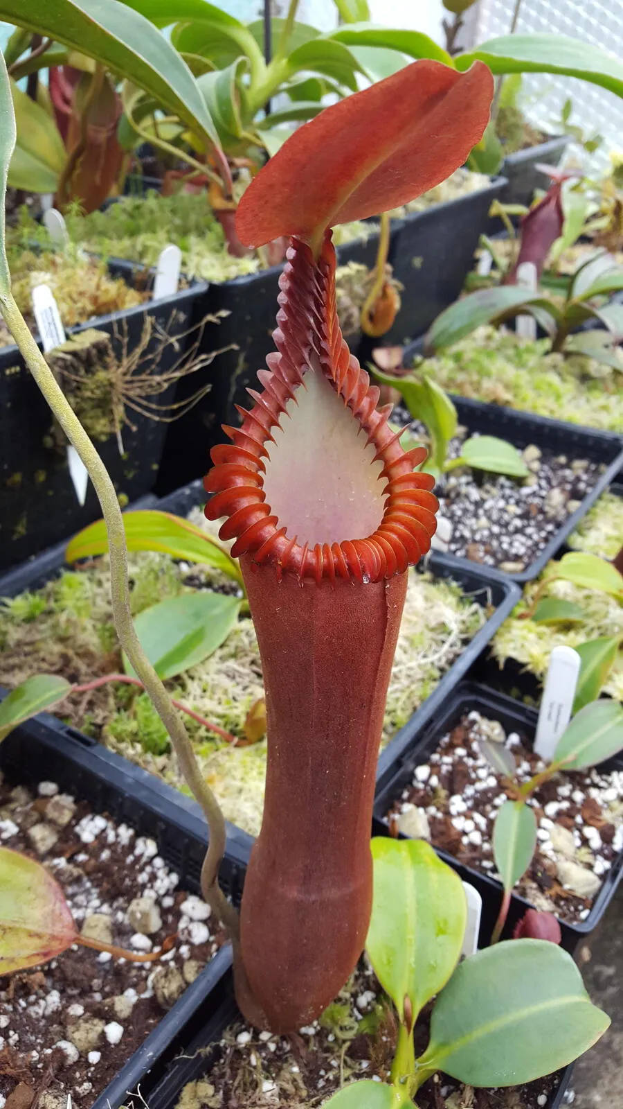 Good question. I’m a naturally competitive person and I guess my initial dream when I started growing Nepenthes all those years ago was to have the biggest collection in the UK. There weren’t many serious growers then and I knew most of them. I certainly never achieved this goal; on growing space alone, it was never going to be possible. Grown well, Nepenthes get big, some very quickly, and as we all know you can never have enough growing space. I often raise my eyes when I see small N. rajah or N. lowii and similar plants growing in terrariums. As Roy Schneider said in Jaws, “You’re gonna need a bigger boat”.