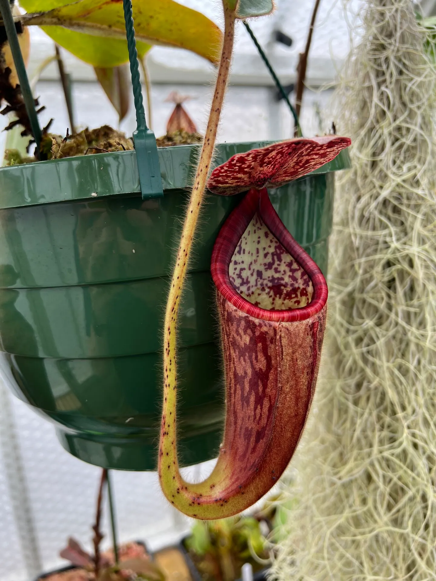 The glands are not the only distinctive characteristic of this species. All parts of the plant - from the leaves down to the tendrils and pitchers - are covered in a thick coat of rusty brown hairs (or ‘indumentum’). I’d recommend this excellent video about N. glandulifera if you’re interested in seeing a mature specimen.